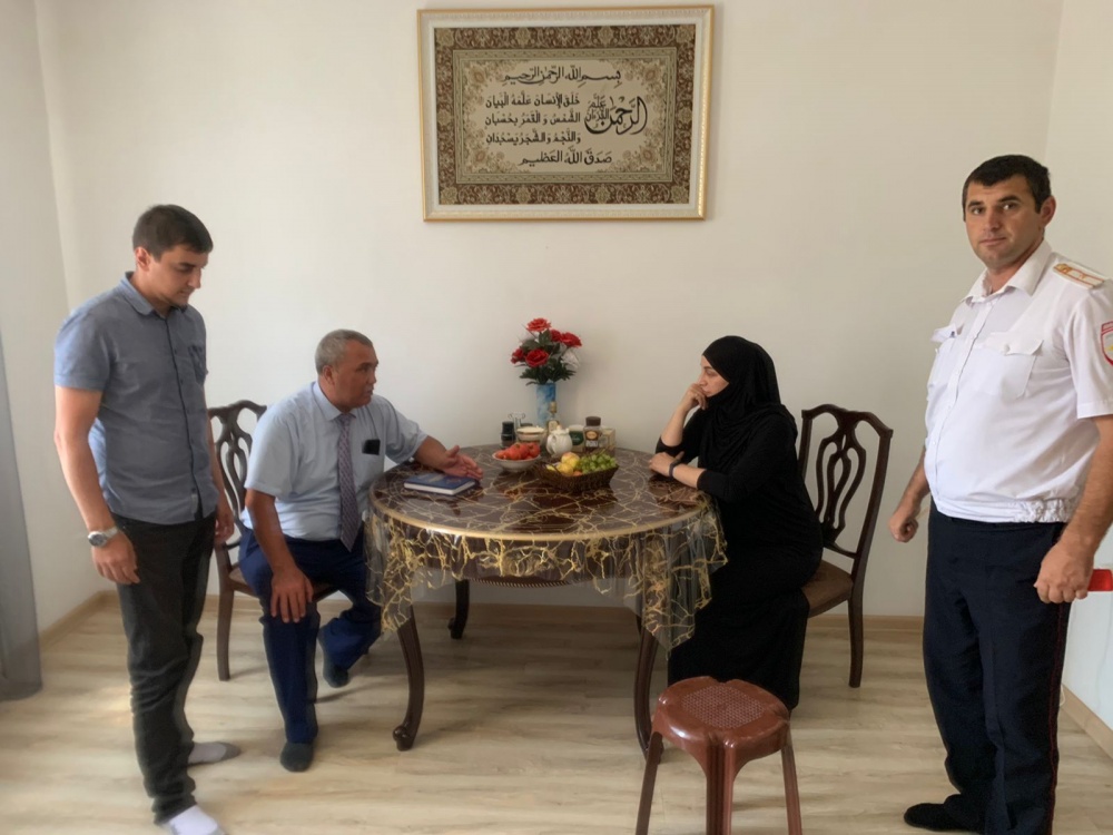 Сегодня, межведомственной рабочей группой по противодействию идеологии терроризма администрации района, проведены встречи с детьми участников НВФ,. Рабочую группу представляли и.о начальника отдела по антитеррористической работе Атетеров Терикмурза, главный специалист отдела по антитеррористической работе Саид Бакиев, участковый уполномоченный майор полиции ОМВД России по Хасавюртовскому району Алиев Шамиль.