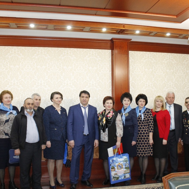 20 марта в администрации Хасавюртовского района состоялась встреча, Главы района Джамбулата Салавова, с общественной делегацией г. Курска, в составе руководителя общественной группы, Председателя регионального Союза женщин России г. Курска, Елены Веселовой, члена правления регионального Фонда мира России по Курской области Светланы Медведской, заместителя председателя регионального отделения ветеранов ФСБ России Александра Звонарева, заместителя председателя по делам религии Курска и Курской области Долгата Черкесова, работников образования, отдела опеки и попечительства, Кадетских организаций Курска и др. В мероприятии приняли участие первый заместитель главы администрации района Загир Боташев, заместитель главы администрации Вахит Касимов и др. В теплой и дружественной обстановке, в кабинете Главы района, состоялась беседа, в ходе которой Елена Веселова озвучила цель приезда делегации в Хасавюртовский район и о продолжении встреч с Республиканскими органами власти. В частности было отмечено, что в рамках реализации государственной политики РФ в сфере патриотического воспитания и повышения гражданской ответственности за судьбу страны, обеспечения преемственности поколений россиян любящих свою Родину, а также отдавая дань Памяти героям ВОВ дагестанцам, участвовавших в битве на Курской дуге и сражениях за г. Курск - « Дагестанцы героически и мужественно участвовали в военных событиях на Курской и дуге и обороне Курска. Многие из них пали смертью храбрых на полях сражений. Один из таких Героев Арслангереев Ильяс Акбулатович. Наша делегация прибыла посетить родину Героя и отдать дань Памяти всем воинам – дагестанцам, отдавшим свои жизни за Отечество.