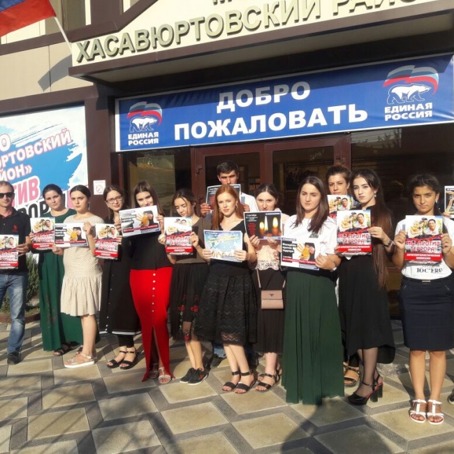 3 сентября в Хасавюртовском районе в районном ЦТКНР состоялась молодежная акция « Вместе против террора», посвященная Дню солидарности в борьбе с международным злом – терроризмом и экстремизмом. В акции приняли участие работники молодежного центра, работники культуры и активисты молодежного центра в поселениях района « Наследники». В своем выступлении директор молодежного центра администрации района Гаджимурад Коймурзаев отметил, что мировое сообщество осознало видение того, что в борьбе с распространением терроризма и экстремизма в мире, нужно объединять все здоровые силы общества.