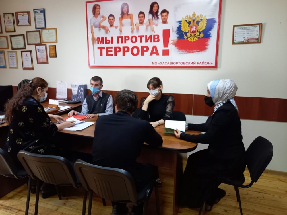 В ЦТКНР района прошло заседание рабочей группы, в работе которого приняли участие начальник отдела по антитеррористической работе Исрапил Гусейнов, директор МКУ «Молодежный центр» Дженнет Адилова и другие. Повесткой дня было обсуждение итогов профилактической работы с мигрантами, проживающими на территории района.
