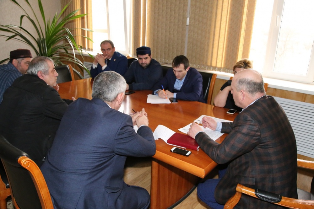 В администрации МО «Хасавюртовский район», под председательством заместителя Главы муниципального района Имампашы Бакиева, прошло совместное совещание по обсуждению поступивших представлений от Хасавюртовского МРСО СУ СК РФ по РД «Об устранении причин и условий, способствовавших совершению преступления (в порядке статьи 158 УПК РФ)». В работе совещания приняли участие старший помощник прокурора Хасавюртовского района Эминов, следователь по особо важным делам Хасавюртовского МРСО СУ СК РФ по РД Ибрагим Алтемиров, начальник отдела ЗАГСа Магия Порсукова, председатель Совета имамов Хасавюртовского района Раджаб-хажи Ханмирзаев, заместители глав администраций и имамы с.Карланюрт и Байрамаул.
