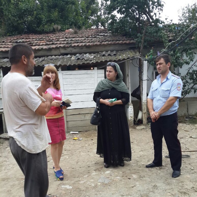 В составе выездной рабочей группы - Наида Камилова, главный специалист комиссии по делам несовершеннолетних и защите их прав, инспектора ПДН ОМВД по Хасавюртовскому району Рашид Дациев, Курбан Гаджиев, Ваха Ахметханов, специалист по работе с семьей Рашия Солтанахмедова и психолог комплексного центра социального обслуживания Гуля Атаева. Цель выездных проверок, выявление и постановка на учет несовершеннолетних, склонных к правонарушениям, а также родителей, которые не исполняют свои обязанности по воспитанию и содержанию своих несовершеннолетних детей, а также проверка условий воспитания и содержания несовершеннолетних, состоящих на профилактическом учете.