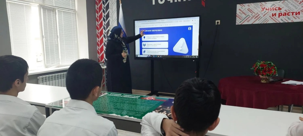 С целью повысить осведомлённость учащихся о террористических угрозах, научить распознавать вербовщиков, дать практические рекомендации по защите себя от манипуляций в реальной жизни и в интернете 23 декабря в МКОУ «Эндирейская СОШ №1» лектор дагестанского филиала российского общества «Знание» Анжела Осиева провела со старшеклассниками видеопрезентацию на тему: «Как защитить себя от вербовки».
