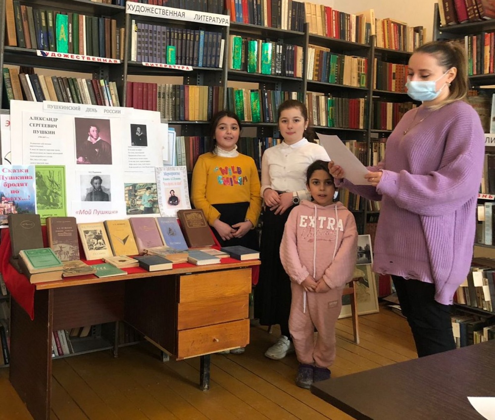Библиотекарь провела опрос на улицах села. Задавала вопрос читателям, просила вспомнить строчки из любого произведения или хотя бы название его сказок, стихов и поэм. Почти все опрошенные Пушкина называли «русским гением». На выставке в библиотеке селения Теречное представлен материал о дуэли поэта с Дантесом, «Евгений Онегин», «Капитанская Дочка», «Борис Годунов», «Полтава» и др. Библиотекрь селения Тукита провела литературный час: «Я Пушкина читаю вдохновенно». Читатели узнали биографию Пушкина, читали стихи и отрывки поэмы. В библиотеке селения Карланюрт прошел литературный час: «Нет весь…я не умру». Читатели читали стихи, рассказали отрывки из сказок А.С. Пушкина.