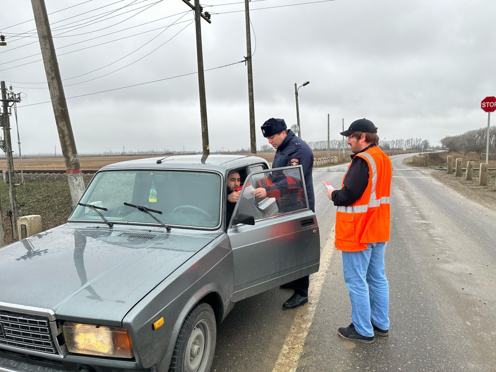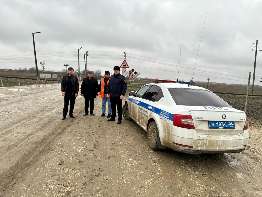 И.о. Начальником дистанции пути Багаудином Магомедназировичем во взаимодействии с ответственным секретарем комиссии по обеспечению безопасности дорожного движения в МО «Хасавюртовский район» Саидом Азматовичем и ОГИБДД МВД России по Хасавюртовскому району было организовано мероприятие в ходе которого проверялось техническое состояние железнодорожных переездов автодорожных подходов к ним, знаков, дорожной размети Хасавюрт-бабаюрт-к/з Новая жизнь на переезде52 км пк 5., а также раздача агитационных буклетов и памяток о соблюдении ПДД на железнодорожных переездах