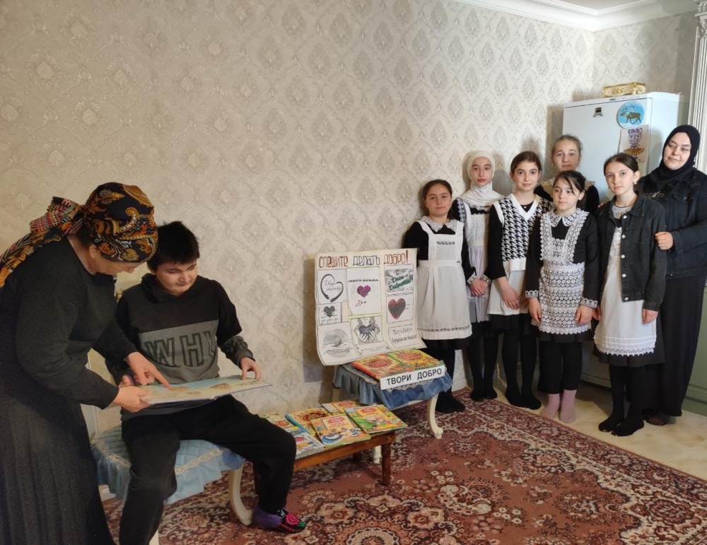 Так библиотекарь селения Шагада Муслимат Муртазалиева, организовала с читателями посетила на дому ребёнка с ограниченными возможностями Исаеву Мадину, а также посетили одинокую женщину Исрапилову Загру. Такие встречи иногда помогают людям, хотя бы на время забыть о своих невзгодах создают хорошее настроение, радоваться жизни. Дети помогли по хозяйству. А в завершении дети прочитали стихи и вручили небольшие подарки.