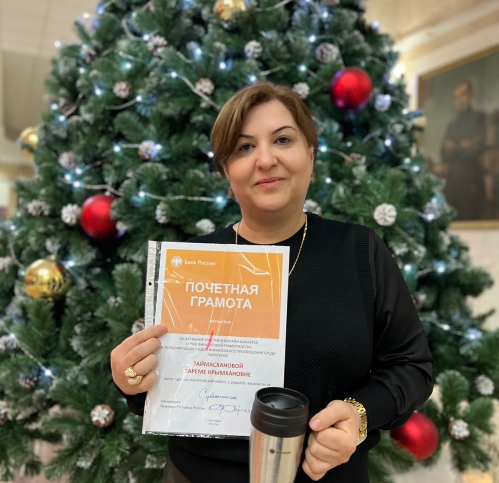 В этом конкурсе приняла участие заведующая Эндирейской сельской библиотеки Таймасханова Зарема Крымхановна . По итогам Конкурса Таймасханова Зарема награждена Почетной грамотой : За активное участие в ОНЛАЙН- КОНКУРСЕ « Урок финансовой грамотности» и популяризации идей финансового просвещения среди читателей». Также Таймасханова Зарема получила именной подарок.