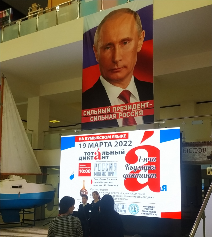 19 марта на базе исторического парка « Россия – моя история» состоялся тотальный диктант на кумыкском языке, в котором приняла участие общественная делегация Хасавюртовского района, в том числе работники СМИ района. Организатором мероприятия выступил Фонд поддержки талантливой молодежи имени Султан – Мута Тарковского, где условием диктанта является свободное участие любого желающего, независимо от деятельности и оценить свои знания в написании диктанта по родному языку.