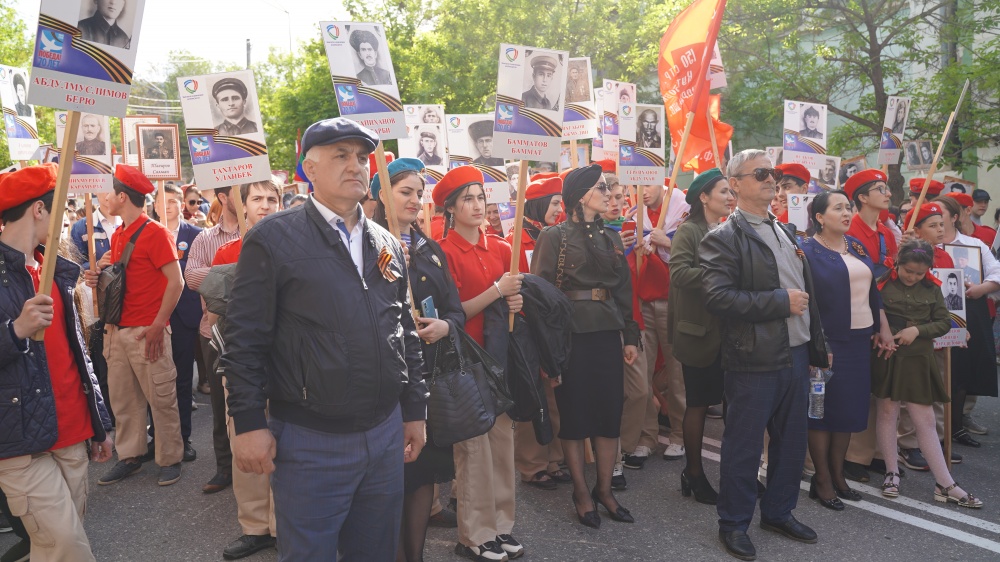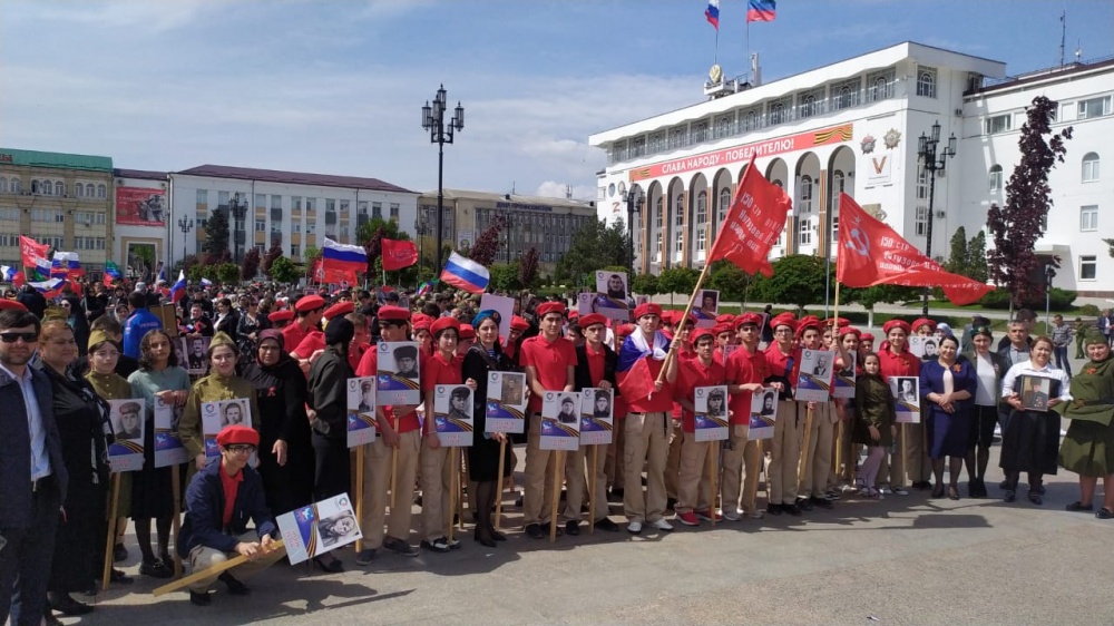 Делегация работников администрации волонтеры Победы и юнармейцы Хасавюртовского района приняли участие в Шествии Бессмертного полка в Махачкале