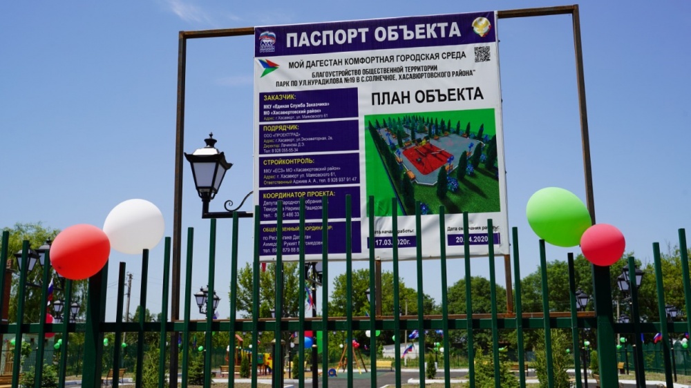 Сегодня в рамках реализации проекта « Мой дагестан - Комфортная городская среда», иницирированного Главой РД Владимиром Абдуалиевичем Васильевым, в селении Солнечное Хасавюртовского района состоялось торжественное открытии властями района общественного парка с детской площадкой. В церемонии открытия приняли участие, региональный координатор партийного проекта « Городская среда» от партии « Единая Россия », депутат Народного Собрания РД, Темуркаев Нариман, общественный координатор проекта « Мой Дагестан – комфортная городская среда » Ахмедова Рукият, глава села и др. Глава района, Джамбулат Салавов, открывая торжественную часть мероприятия, поздравил его участников с наступающим знаменательным праздником – Днем России, отметив важную составляющую открытия объекта именно в преддверии государственного праздника России.