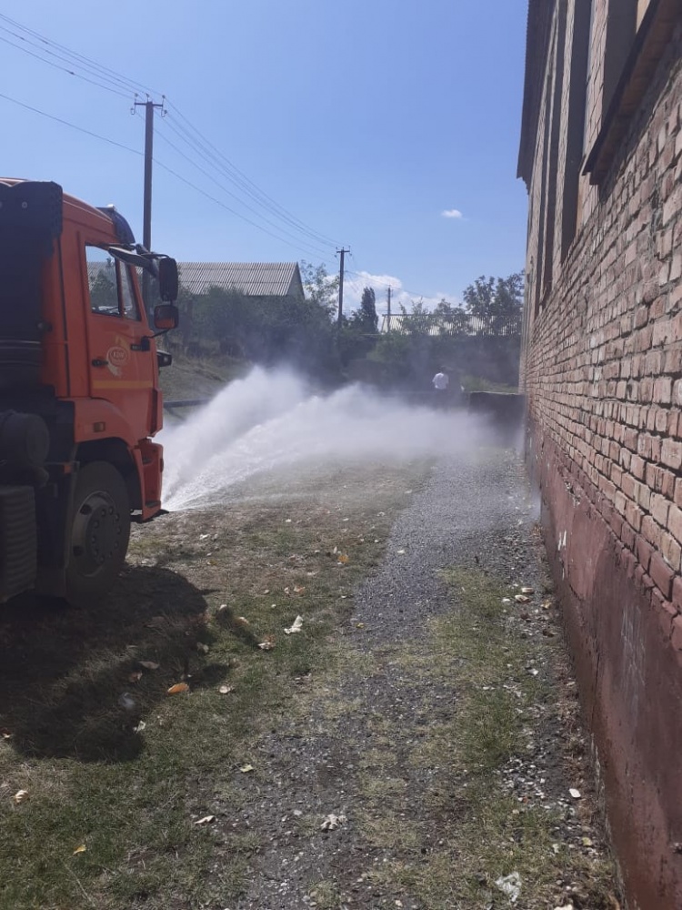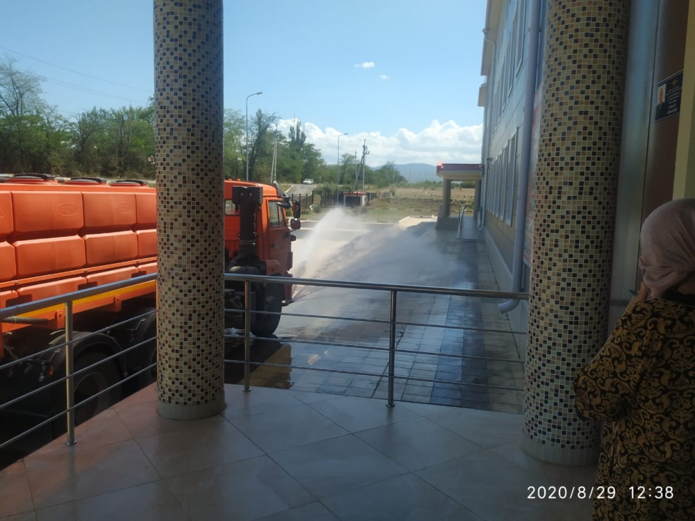 "Предваряя в жизнь рекомендации Оперативного штаба Хасавюртовского района и в целях предотвращения формирования очагов заболеваний, вызванной новой коронавирусной инфекцией COVID-19 в населенных пунктах проходят масштабные мероприятия по дезинфекции, направленные на обеззараживание территорий общественных мест, остановок маршрутных такси, придворовых территорий, улиц и социальных объектов сел с применением спецтехники, и особенно школ. Дезинфекция в школе является регулярным и важным мероприятием, служащим для поддержания благоприятной санитарной обстановки и обеспечения безопасности здоровья многочисленных учеников, учителей и персонала, находящихся в помещениях школы ежедневно с утра и до самого вечера", -говорит Имампаша Бакиев, заместитель главы администрации по общественной безопасности.