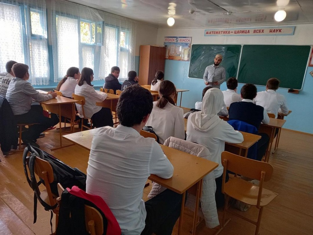 В школах района, проходят встречи с сотрудниками отдела просвещения при Муфтияте РД по Хасавюртовскому району, на актуальные темы « Здоровье», «Веротерпимость», «Нравственный облик» », « Пороки современного общества», «Ислам религия мира» и др. Не остались в стороне и вопросы борьбы с коронавирусной инфекцией, где было отмечено, что ислам призывает бережно относиться к своему здоровью. Также в рамках встреч, были затронуты вопросы нахождения детей в сети интернет, о необходимости контроля посещения сайтов и регулярного обсуждения со школьниками информации, полученной ими из Интернета. Говоря о необходимости информационного противодействия экстремизму, распространяющего свои черные идеи через Интернет, представители духовенства подчеркивают, что в экстремистские сети обычно попадают подростки, которые не имеют начальных знаний о своей религии. В ходе встречи представители духовенства рассказывают учащимся, что Ислам является религией добра и мира, и всегда призывает к уважительному отношению к родителям, к учителям, к друзьям, к старшим.
