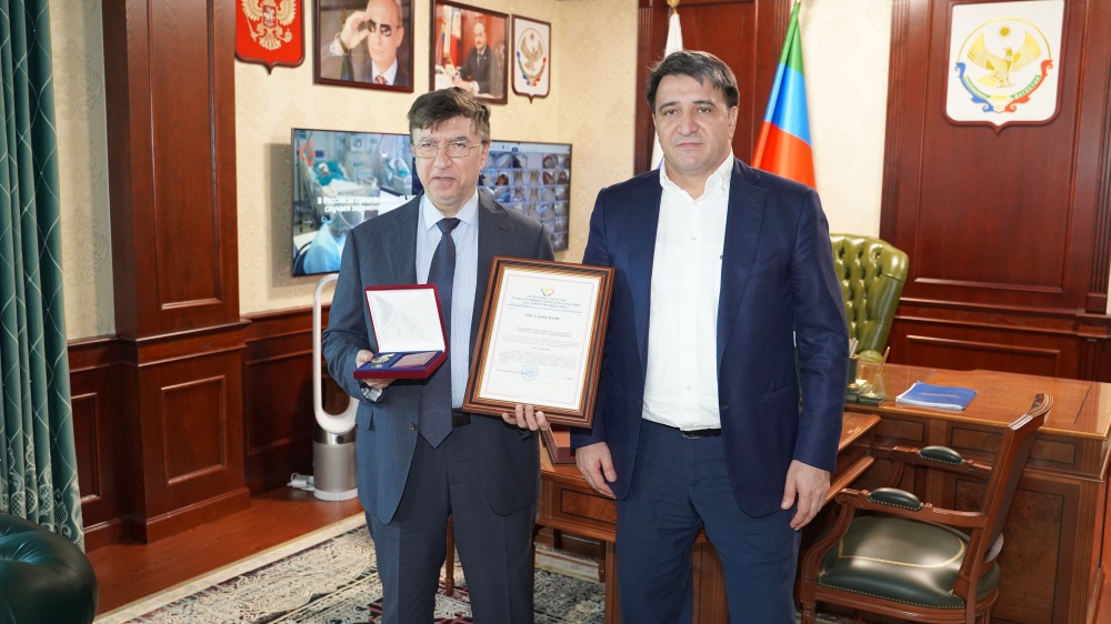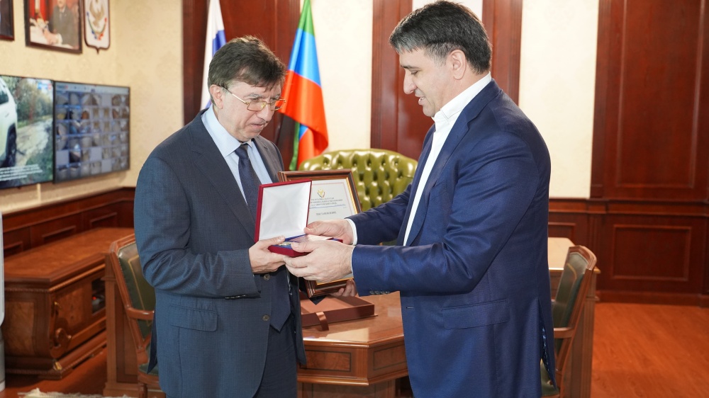 Джамбулат Салавов наградил званием « Почетный гражданин МО «Хасавюртовский район» генерального директора Академического ансамбля танца Дагестана «Лезгинка» Джамбулата Магомедова