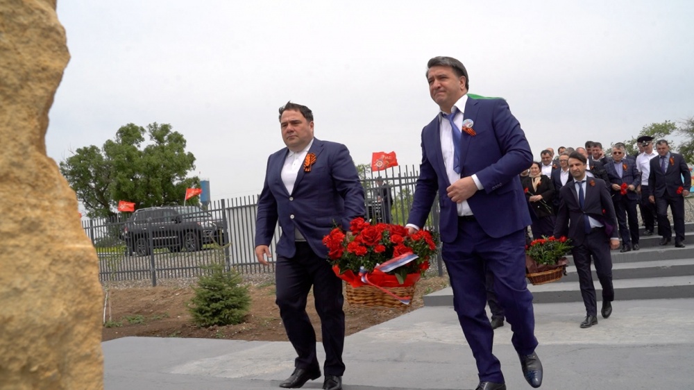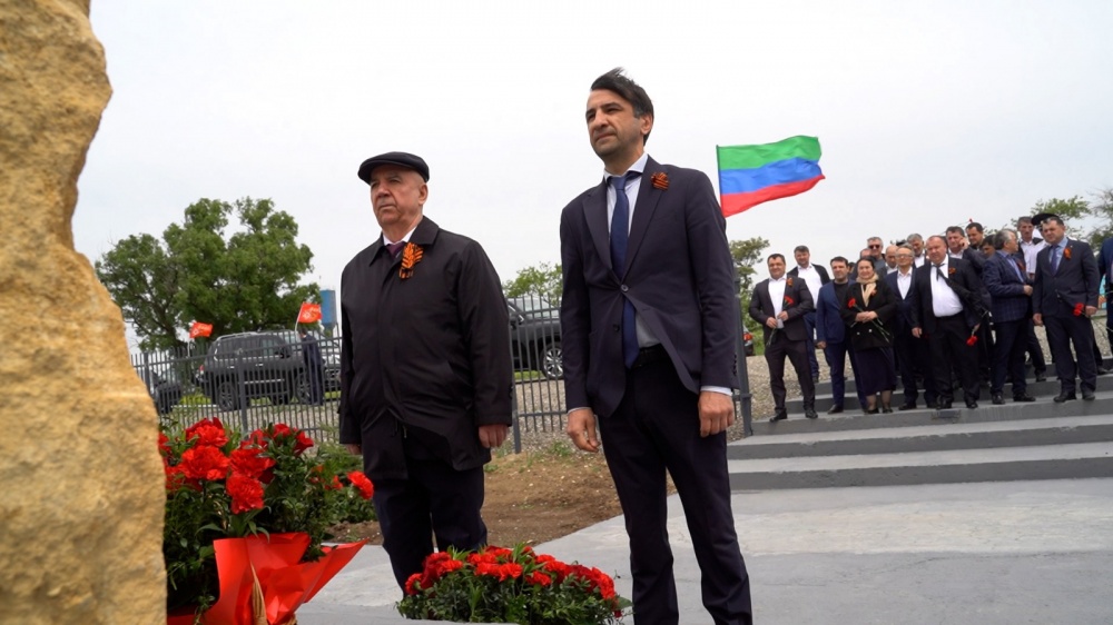 Глава Хасавюртовского района и Министр транспорта и дорожного хозяйства РД возложили цветы у Мемориальной гранитной плиты Героям в «Саду памяти»