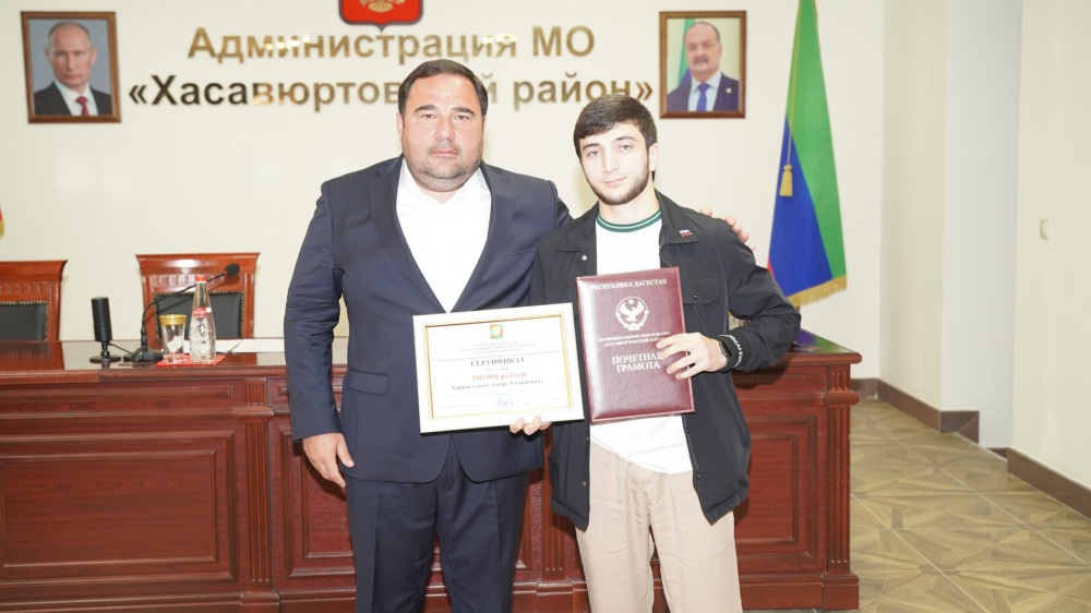 Глава Хасавюртовского района наградил Почетной Грамотой МР призера Всероссийской премии «Служение» в номинации «Молодые кадры — на службе страны» Амира Хириясулаева