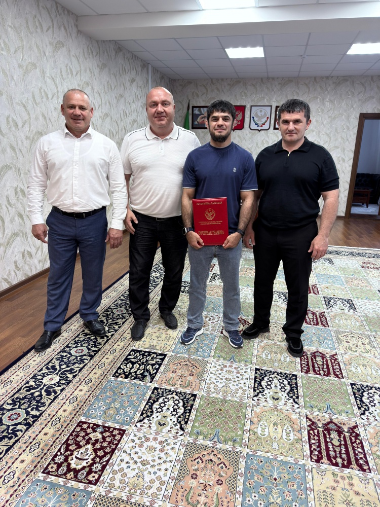 Глава Хасавюртовского района наградил Почетной Грамотой МО « Хасавюртовский район» известного борца греко-римского стиля Азамата Ахмедова