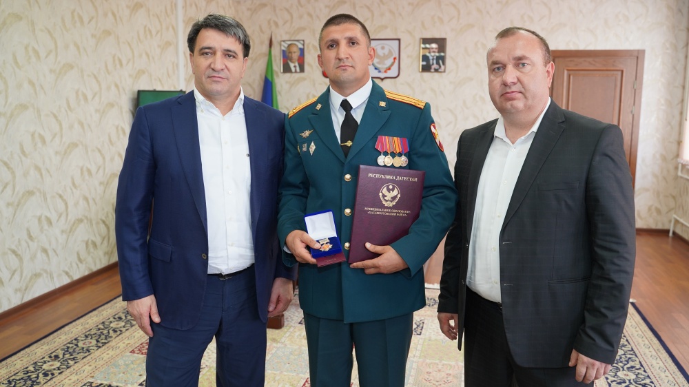 9 сентября в администрации района прошла торжественная церемония награждения, где Глава МР Джамбулат Салавов, наградил высшим знаком отличия муниципалитета « Орденом за особые заслуги» « За мужество, смелость и самоотверженность, проявленные при исполнении гражданского долга – спасения людей на пожаре в условиях, сопряженных с риском для жизни и в связи со 100-летием образования ДАССР » начальника автомобильной службы войсковой части 6752, Федеральной службы войск национальной гвардии Российской Федерации, Абдуразакова Османа.