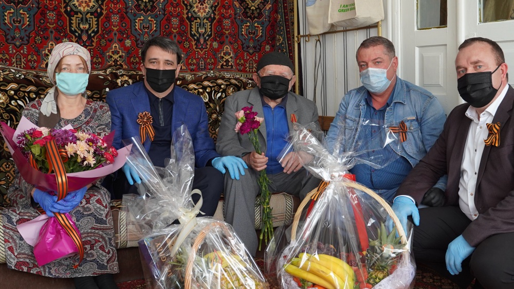 « В канун самого великого праздника, знакового для всей страны, администрация района, не имела права, не посетить и не поздравить вас, дорогой Касум Касумович - с Днем Победы. Ваш дух и оптимизм поражает своим отношением к жизни, это конечно достойный пример для молодежи, как надо относиться к трудностям и как их преодолевать. В прошлом году вы возглавляли шествие « Бессмертного полка », и сегодня даже в сложившейся ситуации, Хасавюртовский район, не отступит от традиций чествования Великого Дня Победы, поздравления наших дорогих ветеранов ВОВ, и мы проводим ее Всероссийской акцией « Окна Победы », где на территории района, в окнах своих домов, жители развешивают портреты и фотографии участников ВОВ и « Бессмертного полка», который традиционно масштабно проходил в районе. От имени Главы Дагестана, Владимира Абдуалиевича Васильева, себя лично, примите самые искренние поздравления с Днем Победы! Долгих лет вам жизни и доброго здравия, счастья и благополучия родным и близким» - отметил Глава района, Джамбулат Салавов и передал праздничные фруктовые корзины и поздравительные денежные конверты, от руководства Дагестана и администрации района.