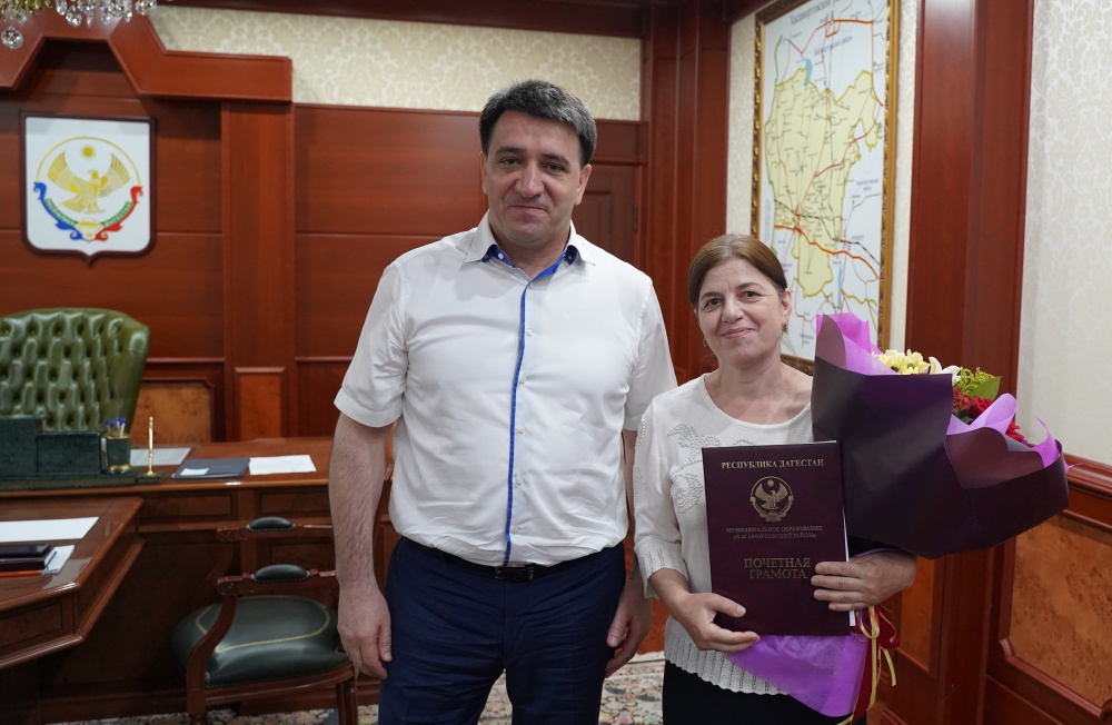 Сегодня Глава района, Джамбулат Салавов, торжественно поздравил работника администрации МР, главного специалиста управления экономики Джаминат Айдемирову, с 60 – летним Юбилеем и вручил Почетную Грамоту МО « Хасавюртовский район» « За многолетний добросовестный труд, достигнутые успехи в работе, высокий профессионализм ».