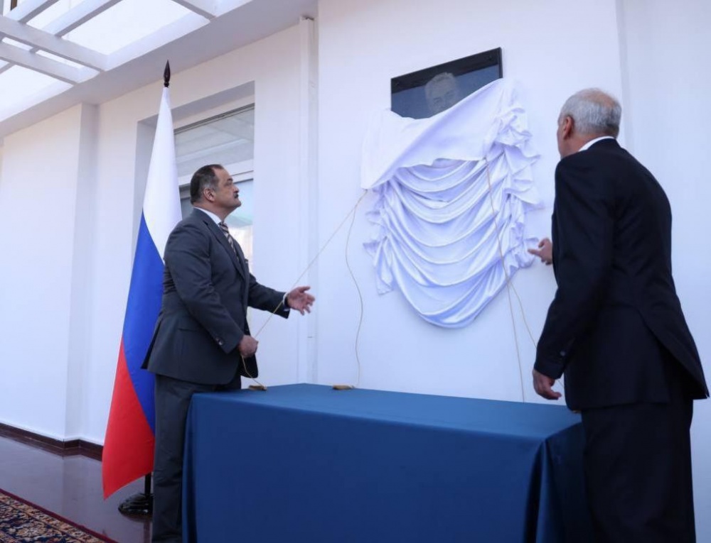 Глава Хасавюртовского района принял участие в церемонии торжественного открытия Мемориальной плиты почетному председателю Госсовета Магомедали Магомедову
