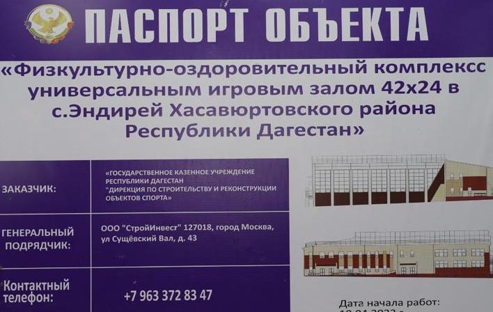 Глава Хасавюртовского района проинспектировал ход строительства Физкультурно-оздоровительного комплекса в селении Эндирей