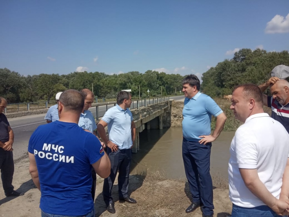 Сегодня, Глава района, Председатель КЧС, Джамбулат Салавов, в сопровождении членов КЧС и ОПБ, а также ответственных лиц подрядной организации, по обслуживанию мостов и опорных сооружений, провел личный осмотр состояния моста через канал Дзержинское. Оперативный выезд был связан, с тем, главы поселений, Октябрьское и Дзержинское, на границе которых находится объект, оперативно доложили Главе района о возможных последствиях, которое может привести размыв моста.