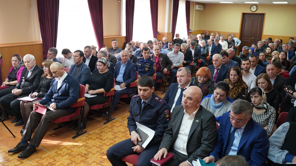 « Уважаемые коллеги! 2019 год мы завершили достойными показателями индикаторов социально – экономического развития района, которые исполнены с перевыполнением всех его значений. Основные цифры вы хорошо знаете, но общие итоги, конечно, будут подведены Республикой позже. Безусловно, его успешные итоги и качественное решение социально-экономических задач – это наш с вами общий результат ответственной и конструктивной работы. Хасавюртовский район, был высоко отмечен Главой Республики Дагестан Владимиром Абдуалиевичем Васильевым в числе лидеров муниципалитетов Дагестана, которые показывают качественные результаты по сбору налогов, выполнению очень важной для региона социально ориентированного проекта « Мой Дагестан », включающий в себя вопросы водоснабжения, строительства и ремонта дорог, благоустройства общественных территорий, в рамках федеральной программы « Комфортная городская среда». Хочу подчеркнуть, что район одним из первых завершил их в 2019 году и в 2020 году пройдут не менее масштабные работы. Очень важно, что и общественно - политическая ситуация на территории района остается стабильной и контролируемой, благодаря совместной и организованной работе ОМВД России по Хасавюртовскому району. Главным общественно - политическим событием 2020 года конечно является Послание Президента РФ Владимира Владимировича Путина Федеральному Собранию, главной составляющей которого выдержано величие и суверенитет Российской Федерации.