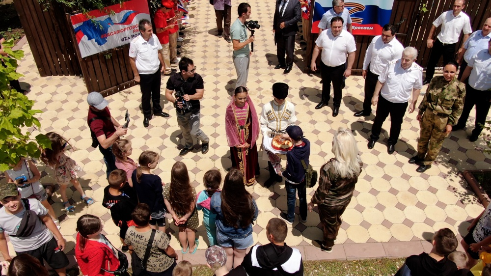 Накануне Глава муниципального района Арсланбек Алибеков, встретил в праздничной атмосфере детей из Донецкой Народной Республики. В мероприятии принял участие начальник Управления по работе с личным составом МВД России по РД Сахават Сахаватов. Детей сотрудников МВД Донецкой Народной Республики встречали юнармейцы которые выстроились живым коридором, не обошлось и без традиционного хлеба – солью, далее воспитанники Центра традиционной культуры Народов России исполнили зажигательный танец «Лезгинку». Глава МР Арсланбек Алибеков, в своём приветствии отметил, что мы очень рады что вы к нам сегодня приехали. Уверен сегодня вы получите много ярких впечатлений и эмоций. Вы - наше будущее, а подвиг ваших родителей пример для всех нас. Мы вместе! Мы верим, что вы будете счастливы и радоваться жизни. Поэтому мы сегодня организовали для вас праздничную атмосферу, желаю вам положительных эмоций и позитивного дня».