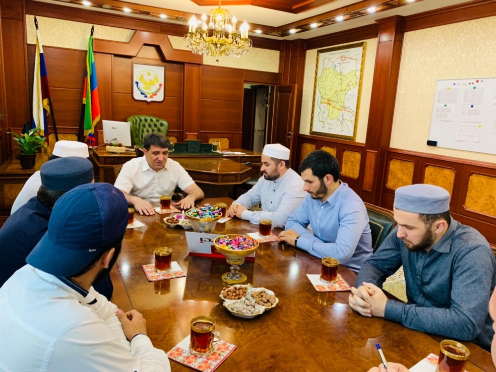 Сегодня, Глава Хасавюртовского района, в рамках встречи с духовенством района, поздравил с назначением на высокий, ответственный пост, нового председателя совета имамов района, Ахмадрасула Качалаева и поблагодарил за большую духовную работу, предшественника Раджаб-хаджи Ханмирзаева. На встрече присутствовали, первый заместитель Муфтията РД, Абдулла Аджимоллаев, заместитель председателя совета имамов района, Абдулкарим Исмаилов, специалист по делам религии администрации района, Саид Гамидов. Встреча прошла насыщенной и конструктивной, где темой обсуждения стали вопросы взаимодействия органов местного самоуправления и духовенства района. Также в ходе беседы были затронуты вопросы духовно – нравственного воспитания, где в частности Глава района, Джамбулат Салавов, отметил заслуги предшественника, Раджаб – хаджи Ханмирзаева, в работе с молодежью.