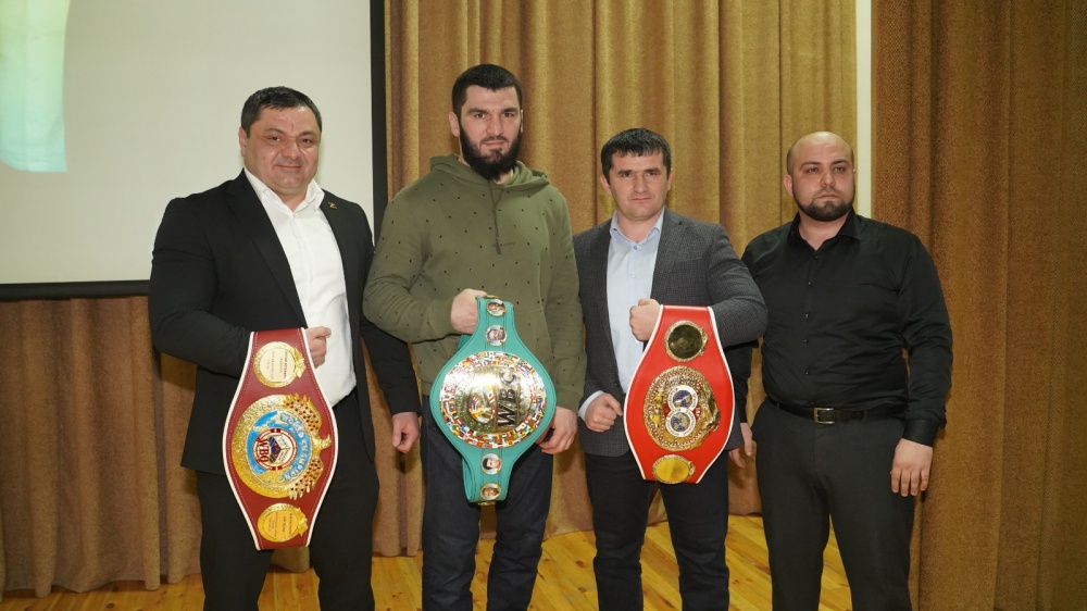Глава МР Арсланбек Алибеков удостоил высоким званием Почетный гражданин МО « Хасавюртовский район» Артура Бетербиева действующего Чемпиона мира по версиям IBF, WBC, WBO