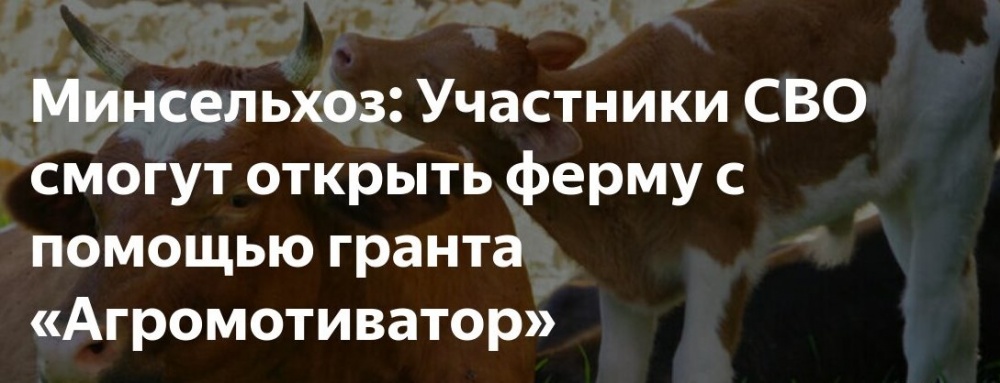 Мы приглашаем участников и ветеранов специальной военной операции, желающих начать или развивать предпринимательскую деятельность в сфере агропромышленного комплекса, подать заявки на получение гранта в размере до 7 млн рублей.