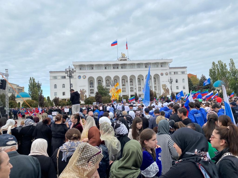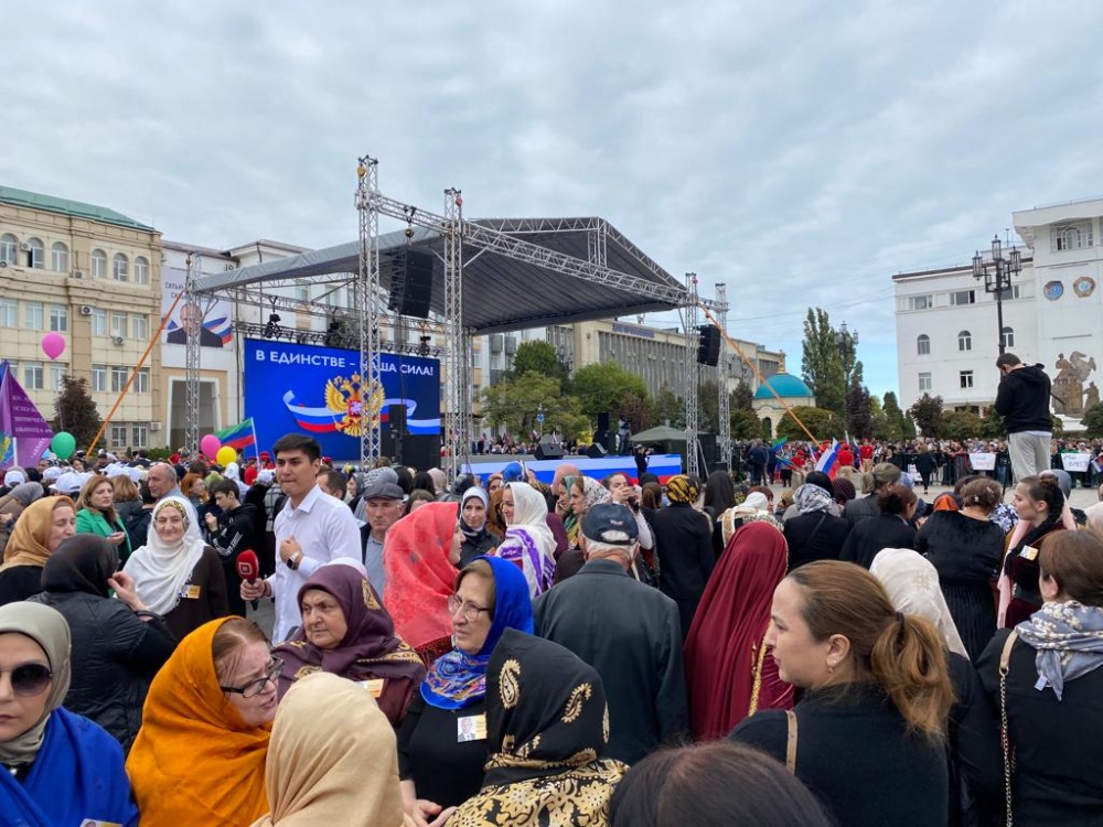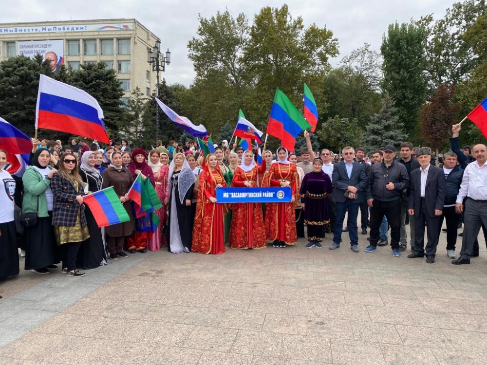 « Хасавюртовский район, руководство администрации, работники структурных подразделений, волонтеры, общественность, глав и жители поселений, лучшие коллективы и солисты управления культуры, сегодня на площади Махачкалы. Площадь не умещает всех желающих, которые хотели принять участие. Эта акция – единый порыв дагестанцев, которые всецело поддерживают курс Президента РФ и Российской армии, а также вхождения в состав России новых субъектов. В единстве – наша сила» - эгида акции, которая все объясняет. Глава РД Сергей Алимович Меликов приветствовал его участников, отметив хороший настрой и настроение его участников » - прокомментировал особенности акции заместитель главы администрации района, Исмаил Шаипов.