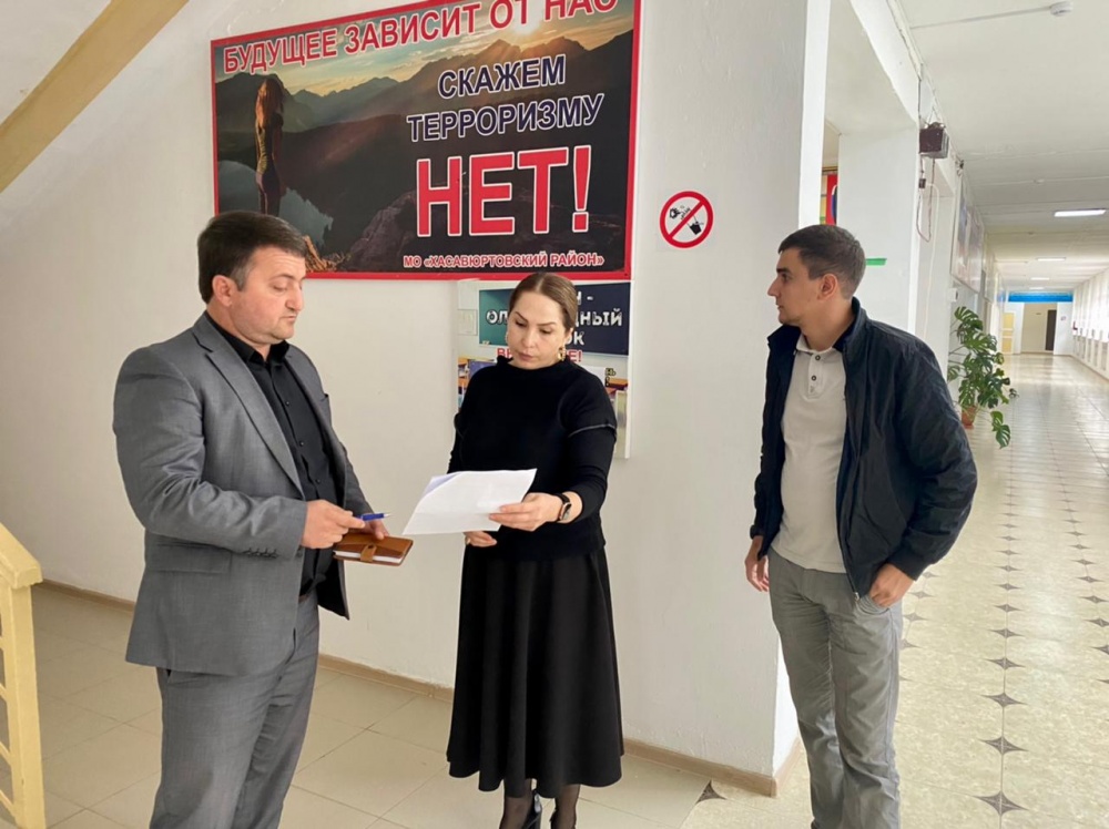 Во исполнение протокола совместного заседания Антитеррористической комиссии в Республике Дагестан и Оперативного штаба в Республике Дагестан от 12 августа 2021 г. № 09-09/4, специалисты отдела по антитеррористической работе администрации МО «Хасавюртовский район» продолжают проверки состояния антитеррористической защищенности образовательных учреждений района.