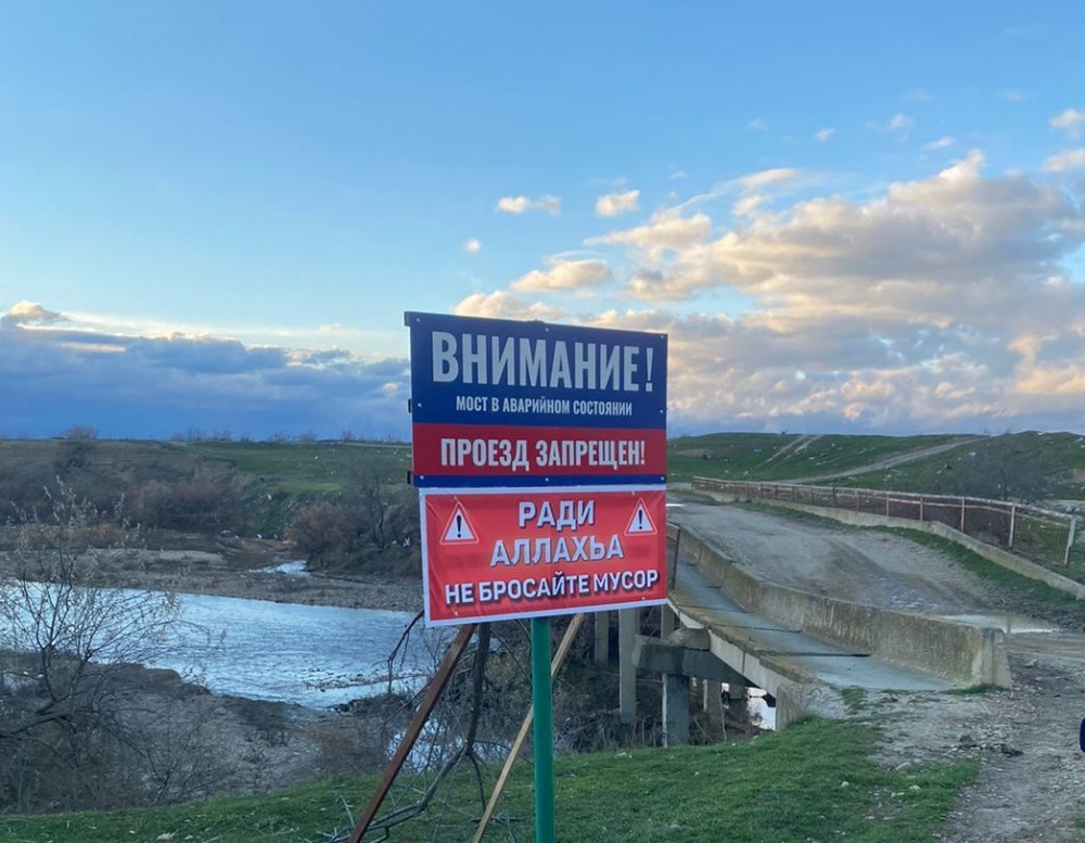 МКУ «Управление по делам ГОЧС и МП» совместно с главой с. Кандаураул, Алхаматовым Чингизом Хусеновичом провели работу по установлению информационного знака перед аварийным мостом в с. Кандаураул. Данный мост обеспечивает доступ селян к кладбищу, сельхоз землям и доступ на мусорную свалку. Напомним, что в результате паводковых вод опорная конструкция моста претерпела изменения и пользование мостом теперь небезопасно.