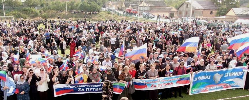 Многотысячный митинг в поддержку Российской армии и курса Президента РФ В.В.Путина «Zащита, Zа мир, Zа Путина» прошел в Хасавюртовском районе