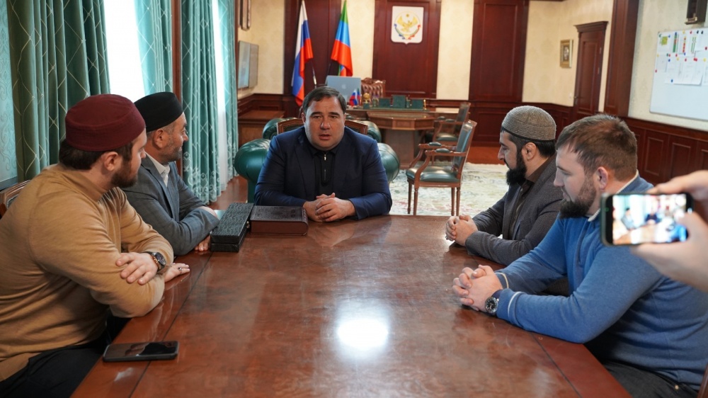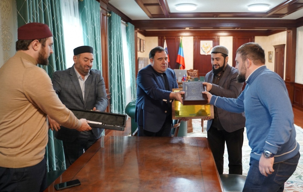 Сегодня, в администрации района состоялась встреча Главы МР Арсланбека Алибекова с председателем совета имамов г. Хасавюрт и Хасавюртовского района Мухаммад Аль-Аргвани. На встрече Мухаммад Магомедов выразил огромную благодарность Главе района за всестороннюю помощь и поддержку, оказанную при проведении выставки священных реликвий Пророка Мухаммада (мир ему и благословение) в селе Куруш.