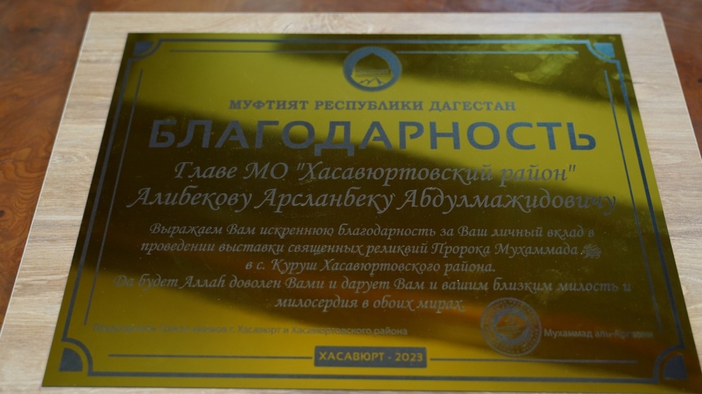 Муфтият РД выразил Благодарность Главе Хасавюртовского района за проведение выставки священных реликвий Пророка Мухаммада