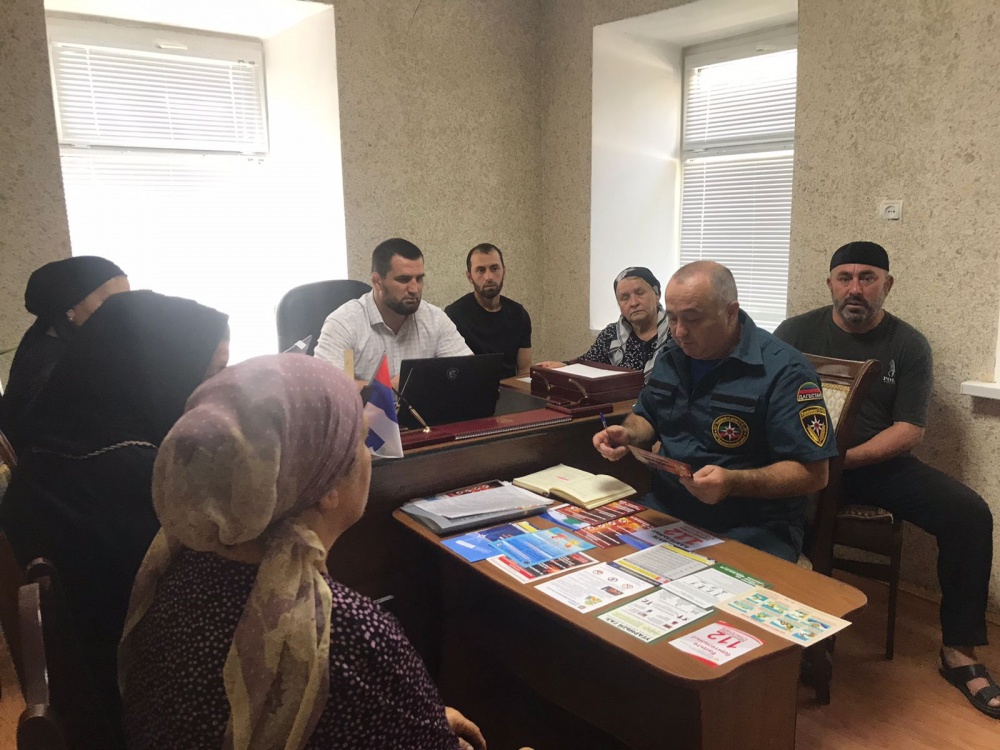 Сегодня, согласно графика проведения занятий с неработающим населением МО «Хасавюртовский район» по вопросам предупреждения и ликвидации чрезвычайных ситуаций природного и техногенного характера и обеспечения пожарной безопасности, утвержденного главой муниципального района, в сельском поселении Покровское проведено информационно-агитационное занятие с жителями данного поселения. Занятие проведено на темы: «Правила пожарной безопасности», «Правила и порядок оказания первой помощи себе и пострадавшим при несчастных случаях, травмах, отравлениях и ЧС», «Меры обеспечения безопасности при отдыхе на водоемах». Главный специалист МКУ «Управление по делам ГО ЧС и МП» МО «Хасавюртовский район» Абдулнасир Тавбиев ознакомил присутствующих о способах защиты и действиях в ЧС, о необходимости соблюдения правила пожарной безопасности, поведения и меры безопасности в воде, о основных правилах оказания первой помощи в неотложных ситуациях, а также о порядке действий населения по сигналу «Внимание всем!» при нахождении дома. В завершении занятия присутствующим раздали информационно-справочные материалы о порядке действий в случае ЧС. По окончании мероприятия слушатели и глава сельского поселения Залимхан Сулейманов поблагодарили за проведённое занятие.