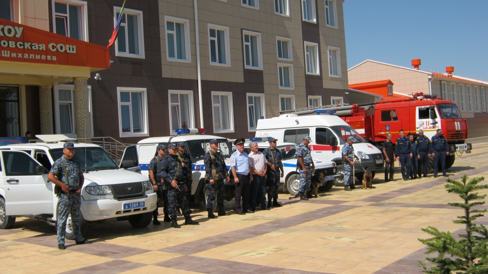 Накануне, в рамках протокольных поручений Главы района, Джамбулата Салавова, о « Мерах по обеспечению общественной безопасности в День знаний» в Хасавюртовском районе, отдел АТК, согласно вводной, на базе образовательного учреждения селения Карланюрт, провел масштабные совместные учения в целях организации контроля и отработки практических действий при введении повышенного « синего » уровня террористической опасности на территории муниципалитета. В антитеррористических учениях, приняли участие экипажи специальной огневой группы и кинологической службы отдела МВД России по Хасавюртовскому району, пожарный расчет ПСЧ-11 ФГКУ « Отряд ФПС по РД », управление по делам ГО ЧС и МП, бригада скорой помощи ГБУ Хасавюртовской ЦРБ, педагогические работники Карланюртовской школы, где было задействовано 5 единиц техники и 30 сотрудников различных ведомств и служб.