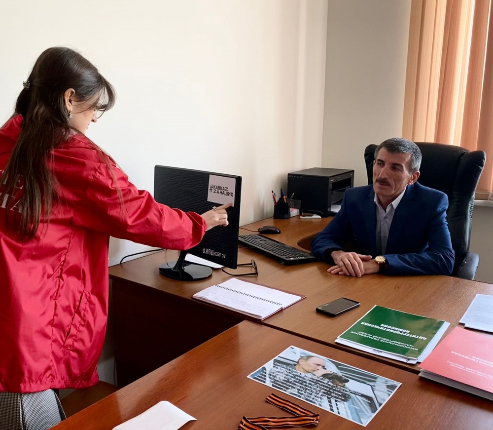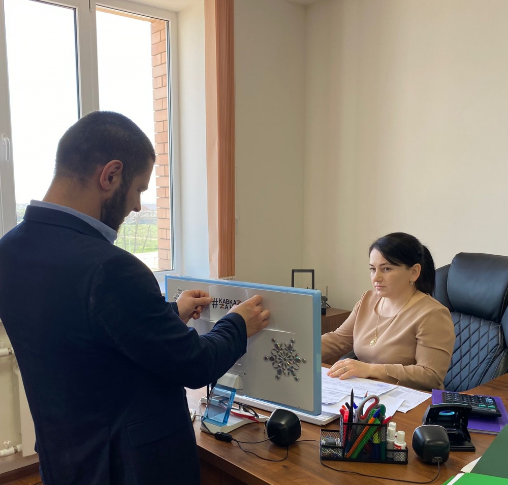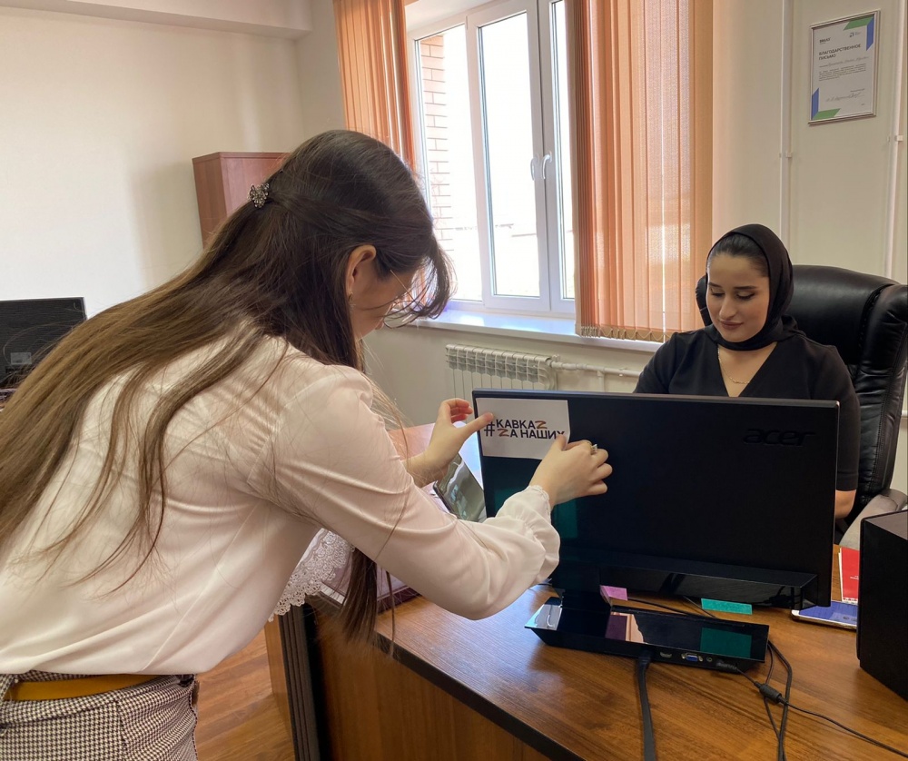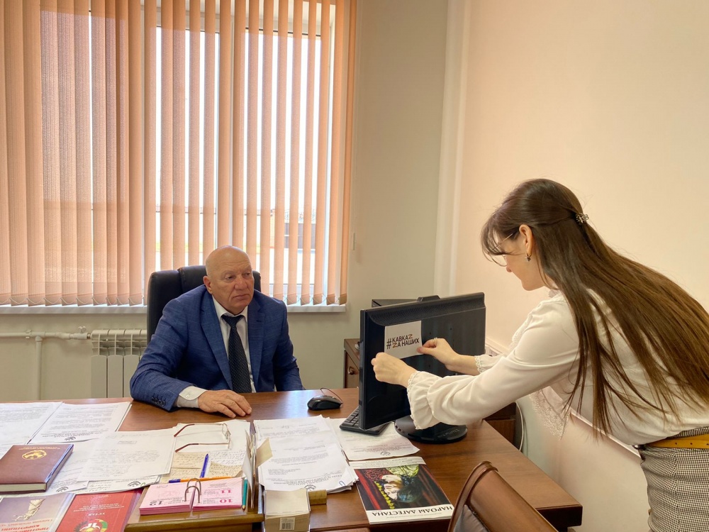 Также в служебных помещениях и на рабочих местах администрации района работники молодежного центра и волонтеры Победы приклеили на мониторы компьютеров стикеры с эмблемой #МЫСВОИХНЕБРОСАЕМ и ZAНАШИХ