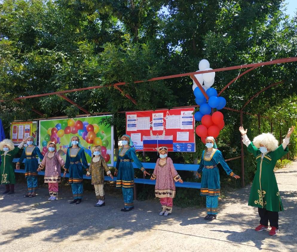 Празднично и торжественно открылись все 69 избирательных участков Хасавюртовского района в заключительный день голосования 1 июля. Народные танцы и песни с самого утра подняли настроение участникам голосования.