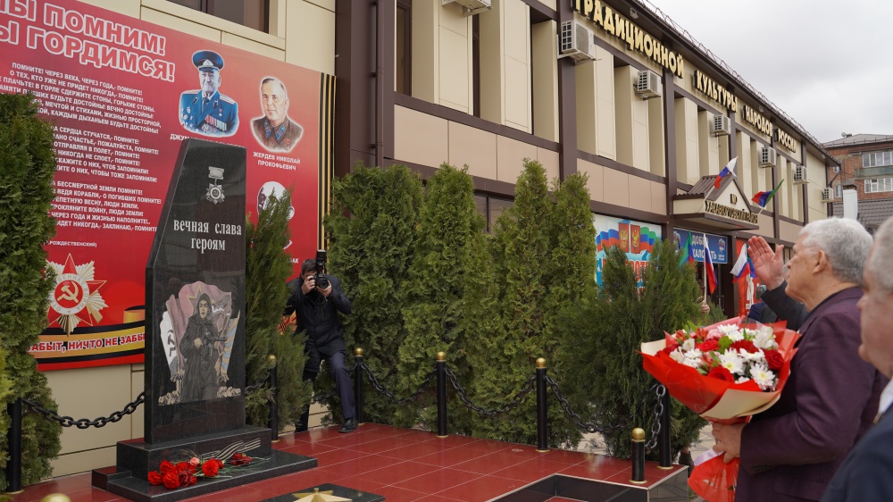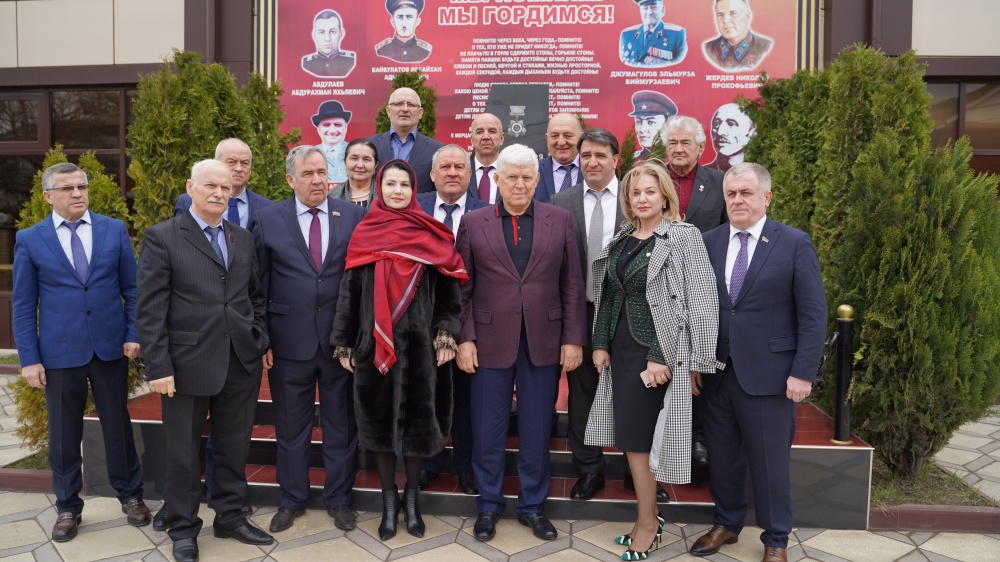 Предваряя встречу Председатель НС РД Хизри Шихсаидов и Глава района, Джамбулат Салавов, возложили цветы к памятнику воинам ВОВ.