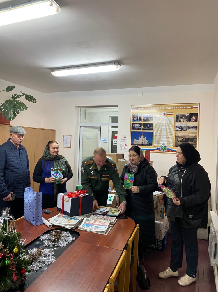 Делегация женщин Дагестана тепло пообщалась с бойцами, поздравили их с наступающим Новым годом и вручили подарки, гостиницы от матерей и детей Дагестана. Очень тепло встретили их руководство госпиталя в лице его начальника и заместителя, врачи и медперсонал, которые передали слова благодарности всем, кто оказал поддержку нашим ребятам, также заявили о готовности предоставить всестороннюю помощь в решении различных вопросов.