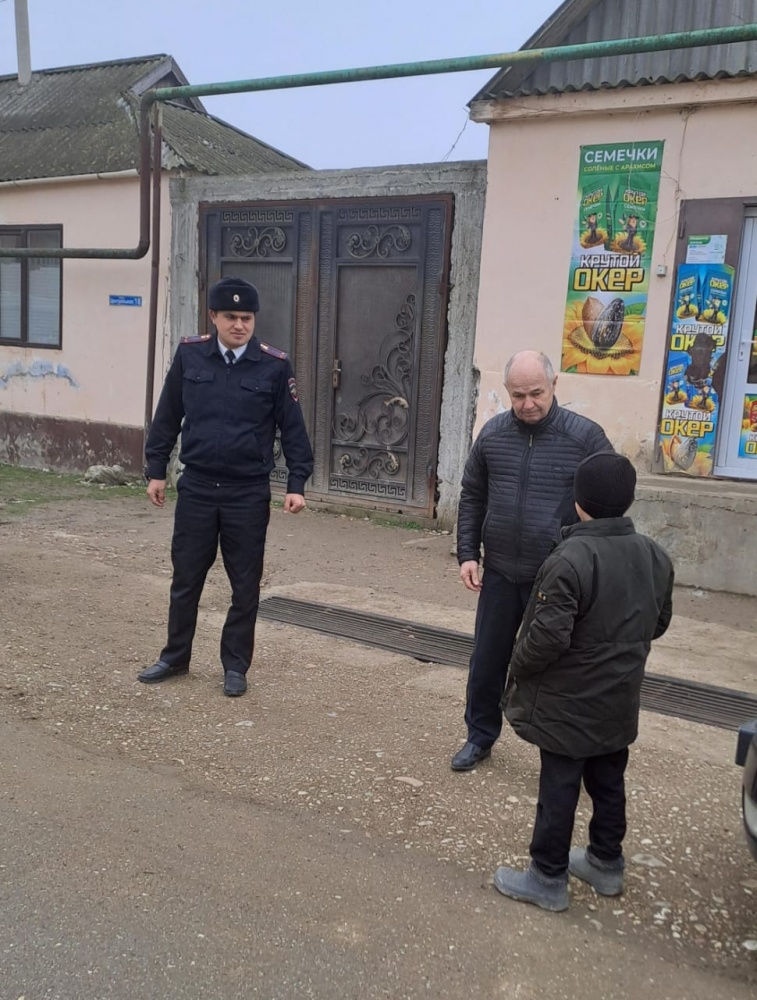 В соответствии с графиком проведения рейдовых мероприятий на территории муниципального образования «Хасавюртовский район» направленных на выявление несовершеннолетних, занимающихся бродяжничеством или попрошайничеством и выявлению лиц, достигших совершеннолетия, вовлекающих несовершеннолетних в занятие бродяжничеством или попрошайничеством на 1 квартал 2024 года, рабочая группа в составе: И.о. начальника отдела по делам несовершеннолетних администрации МО «Хасавюртовский район» Кандаурова Муратхана, инспекторов ОПДН ОМВД России по Хасавюртовскому району Атаева Ислама и Шавхалова Рамазана, обследовали общественные места и места скопления людей на территории населенных пунктов с. Кандаураул, с Новосаситли, с. Сивух, с. Тукита, с. Бамматюрт. Принятыми мерами несовершеннолетних, занимающихся бродяжничеством или попрошайничеством и лиц, вовлекающих несовершеннолетних в занятие бродяжничеством или попрошайничеством не выявлено.