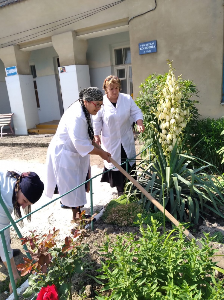 / Работники здравоохранения Хасавюртовского района провели субботник по благоустройству на подведомственных территориях