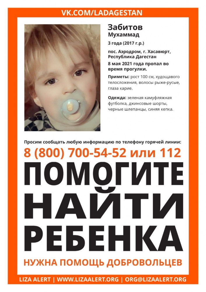 В соответствии с решением Председателя КЧС муниципального района Салавова Д. Ш. утверждён План поисково - спасательных мероприятий на четвёртый день по поиску потерявшегося ребёнка Забитова Мухаммада Шамиловича 2017г.р. проживающего в поселке Аэродром по ул. Котовского, проезд – 6. Напомним в поисково - спасательных мероприятиях принимает участие, Прокуратура Хасавюртовского района, Хасавюртовский межрайонный следственный отдел, ОМВД России по Хасавюртовскому району, Поисково-спасательной службой ГУ МЧС по РД с дислокацией в г. Кизилюрт, Управлением ГО ЧС по г. Хасавюрт, МКУ «Управление ГО ЧС и МП» МР, главы сельских поселений, дружинники и волонтёры.