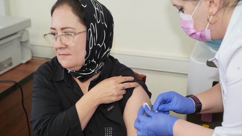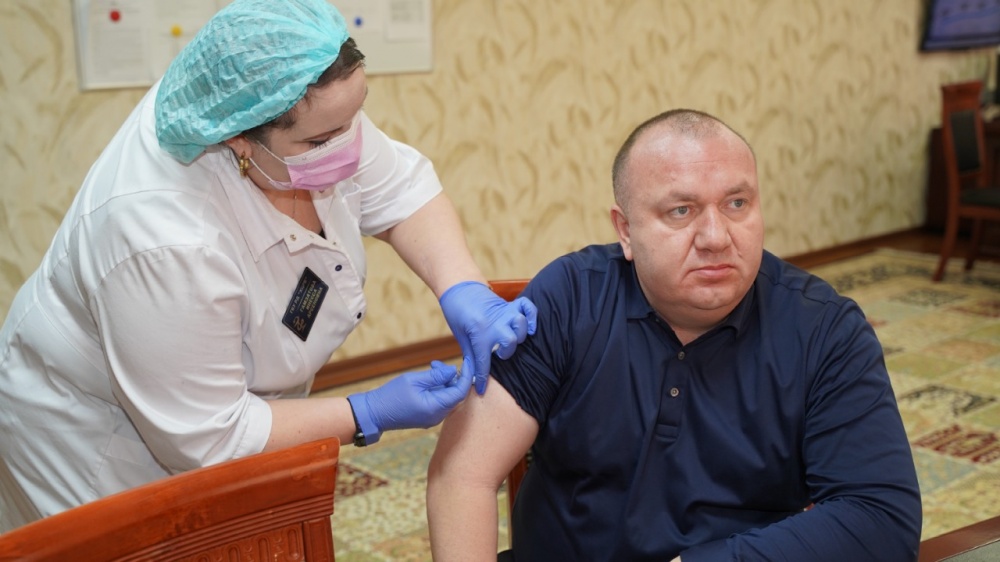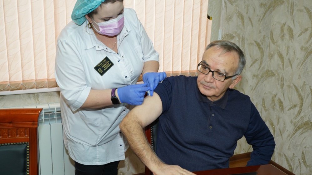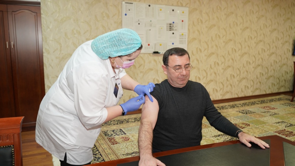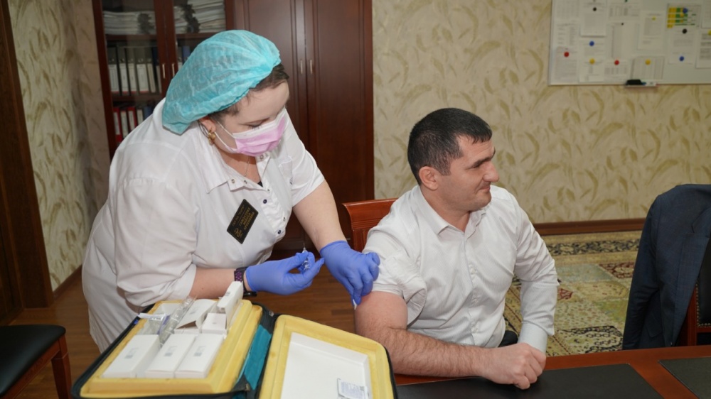Руководство и работники администрации Хасавюртовского района проходят вакцинацию для профилактики гриппа