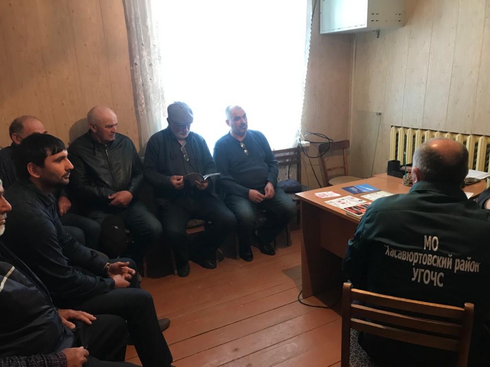 Руководство и специалисты Управления по делам ГО ЧС и МП «Хасавюртовского района продолжают выездные профилактические мероприятия в поселениях района