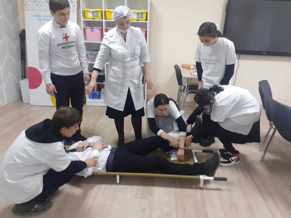 Педагог-организатор ОБЖ МБОУ "Костекская СОШ им. Б.Ш. Бакиева" Марданова Саида совместно со школьной медсестрой Абакаровой Тахминой на базе центра «Точка Роста» в рамках реализации программы месячника оборонно-массовой работы и военно-патриотического воспитания, посвящённого Дню защитника Отечества и комплексной безопасности провела занятие «Оказание первой медицинской помощи при различных видах повреждений» для учащихся 8-11- х классов. Цель мероприятия — повышение медицинской грамотности учащихся средних и старших классов общеобразовательных организаций в вопросах оказания первой помощи, а также создание условий для формирования ответственного отношения к вопросам здоровья. В ходе занятий состоялось обобщение теоретических знаний по оказанию первой медицинской помощи, а также применение их в практической деятельности (умение накладывать повязки, жгут). Также мероприятие способствовало воспитанию у школьников чувства товарищества, формированию потребности бережного отношения к своему здоровью и здоровью окружающих.