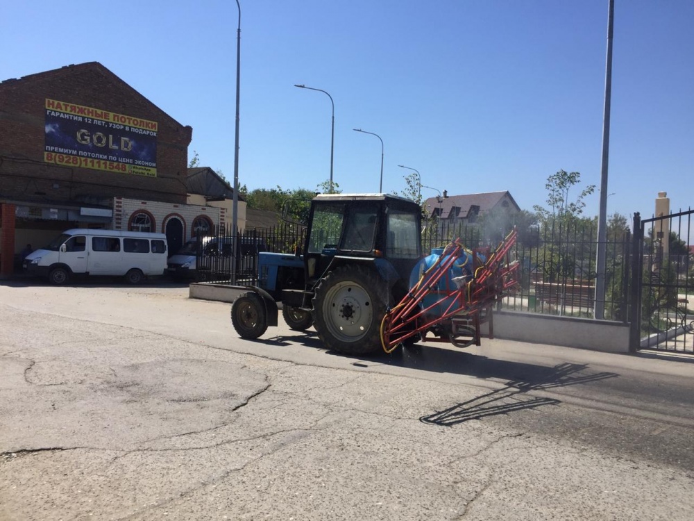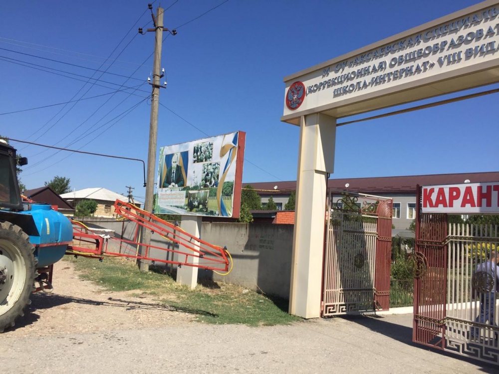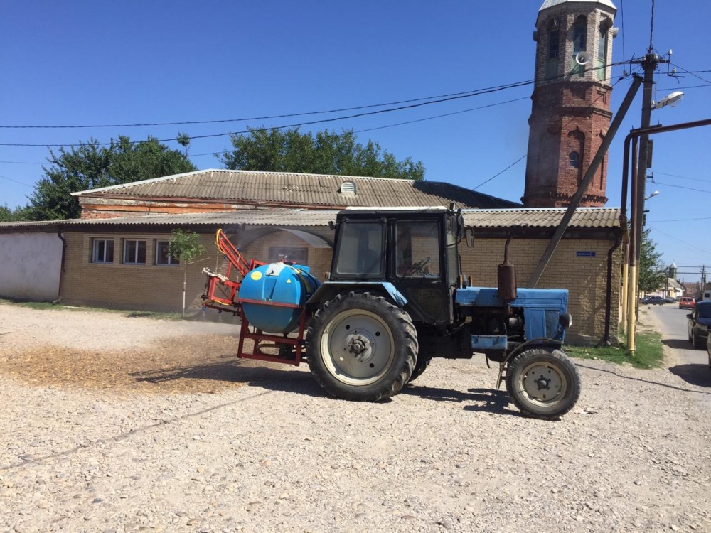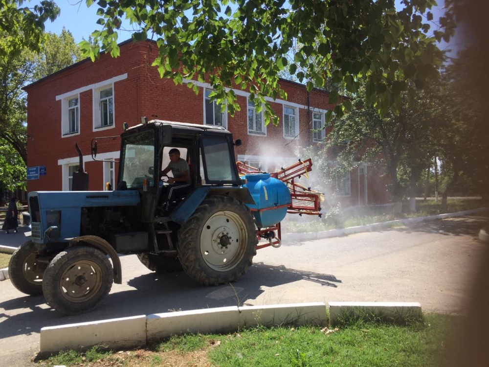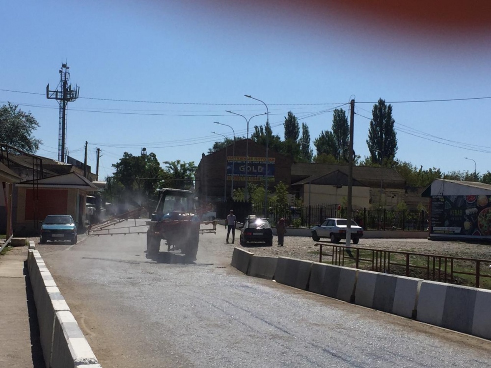 Сегодня в селе Аксай были обработаны не только главные улицы села, но и улицы, ведущие к школам и другим объектам. Специально оборудованные трактора провели обработку территории школ, школы-интернат, больницы, спортплощадки, парка, мечети и друхиг социально важных объектов.